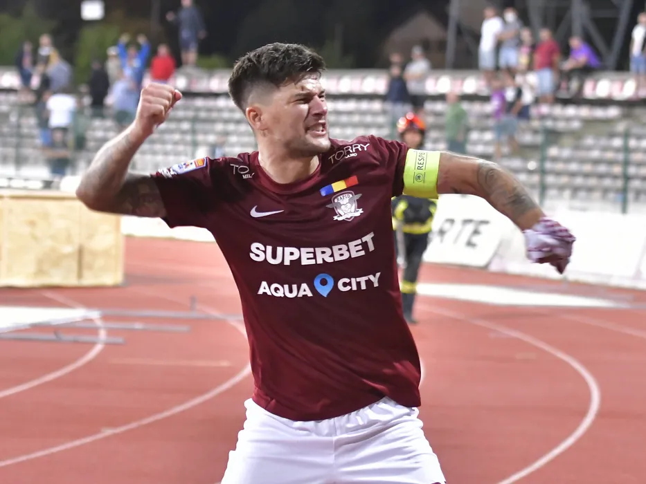 Cristian Ionut Sapunaru canta alaturi de galeria rapidista dupa meciul de fotbal dintre FC Arges si Rapid Bucuresti, contand pentru Liga 1 Casa Pariurilor, desfasurat pe Stadionul Nicolae Dobrin din Pitesti, sambata 7 august 2021. © FOTO:Razvan Pasarica/SPORT PICTURES