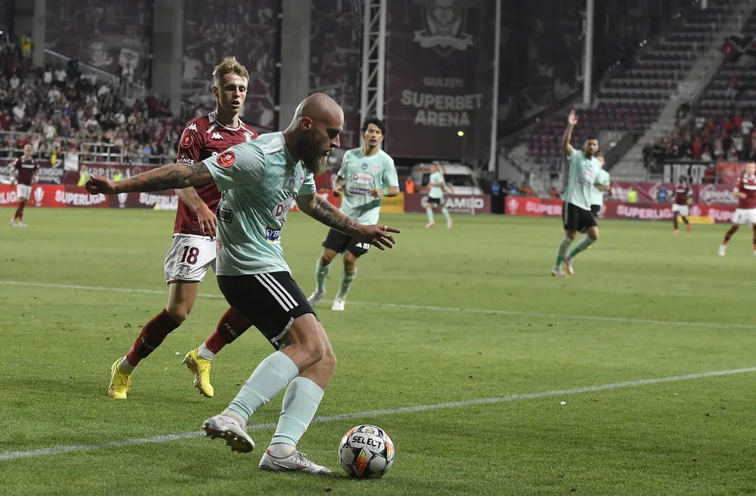 Branislav Ninaj și Timotej Jambor în meciul de fotbal dintre FC Rapid 1923 București și Sepsi OSK Sfântu Gheorghe, contând pentru Superliga Superbet, desfășurat pe Stadionul Superbet Arena - Giulești din București, luni 5 august 2024. © FOTO: Simion MECHNO/SPORT PICTURES