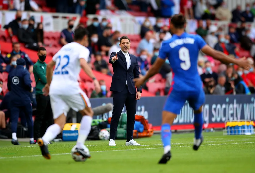 Romania manager Mirel Matei Radoi (centre) gestures on the touchline during the international friendly match at Riverside Stadium, Middlesbrough. Picture date: Sunday June 6, 2021.,Image: 614531770, License: Rights-managed, Restrictions: Use subject to FA restrictions. Editorial use only. Commercial use only with prior written consent of the FA. No editing except cropping., Model Release: no, Credit line: Profimedia