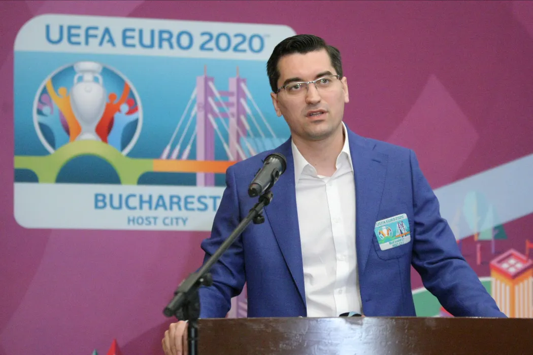Presedinte Federatiei Romane de Fotbal (FRF), Razvan Burleanu, participa la o conferinta de presa privind organizarea UEFA EURO 2020, marti, 26 martie 2019, la Cluj-Napoca. PAUL URSACHI / MEDIAFAX FOTO