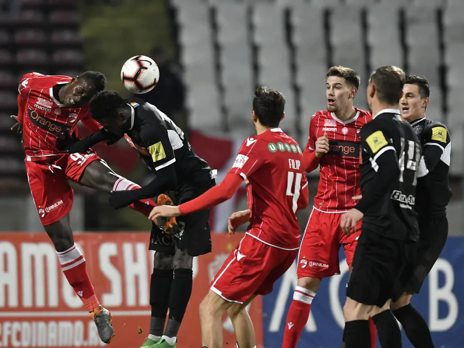 Mamaoutou N'Diaye si Linas Klimavicius in meciul de fotbal dintre Dinamo Bucuresti si CSM Politehnica Iasi, contand pentru Liga 1 Betano, desfasurat pe Stadionul Dinamo din Bucuresti, luni 4 februarie 2019. © FOTO Razvan Pasarica/SPORT PICTURES