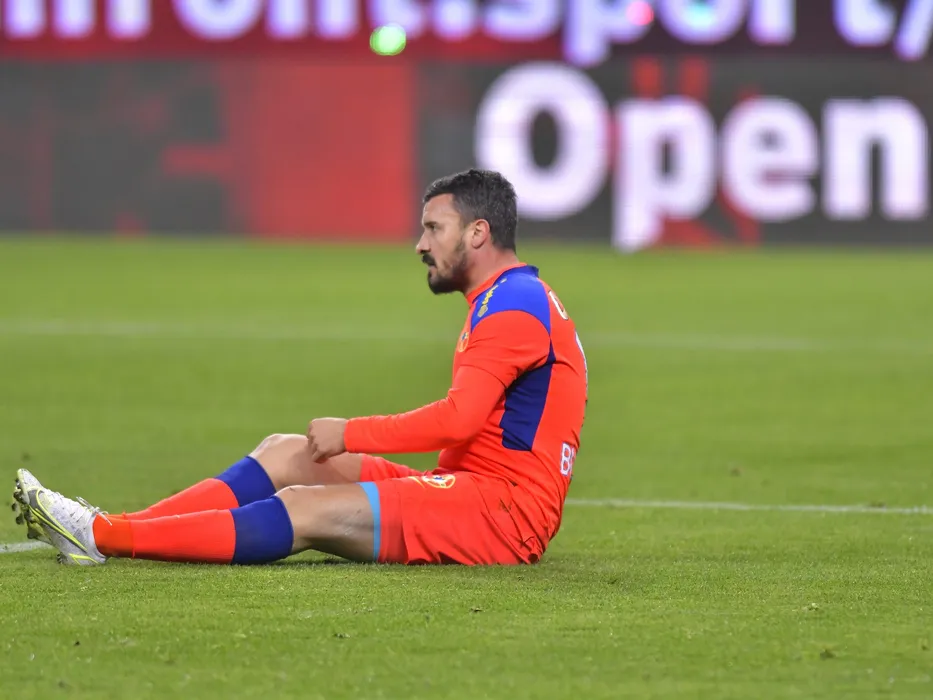 Constantin Valentin Budescu la pamant in meciul de fotbal dintre FCSB si FC Botosani, contand pentru Liga 1 Casa Pariurilor, desfasurat pe Arena Nationala din Bucuresti, duminica 21 noiembrie 2021. © FOTO:Razvan Pasarica/SPORT PICTURES