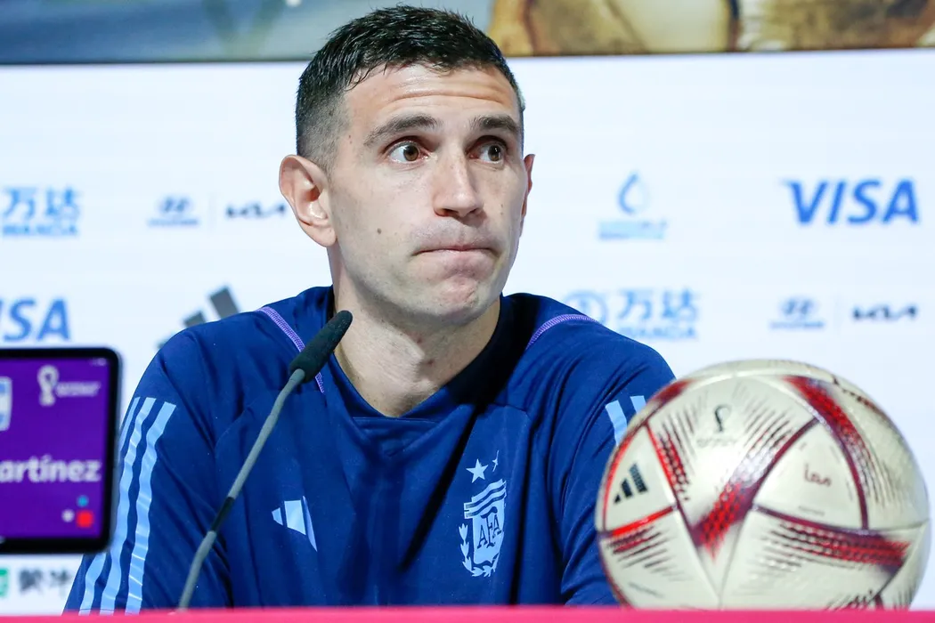 Argentina's goalkeeper Emiliano Martinez gives a press conference at the Qatar National Convention Center (QNCC) in Doha on December 17, 2022, on the eve of the Qatar 2022 World Cup final football match between Argentina and France.