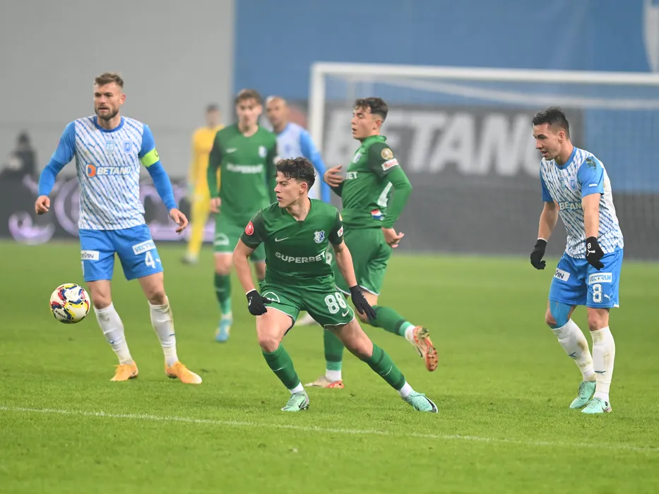 Luca Nicolae Banu si Alexandru Mateiu in meciul de fotbal dintre Universitatea Craiova si Farul Constanta, contand pentru Cupa Romaniei Betano, desfasurat pe Stadionul Ion Oblemenco din Craiova, marti 5 decembrie 2023. © FOTO:Razvan Pasarica/SPORT PICTURES