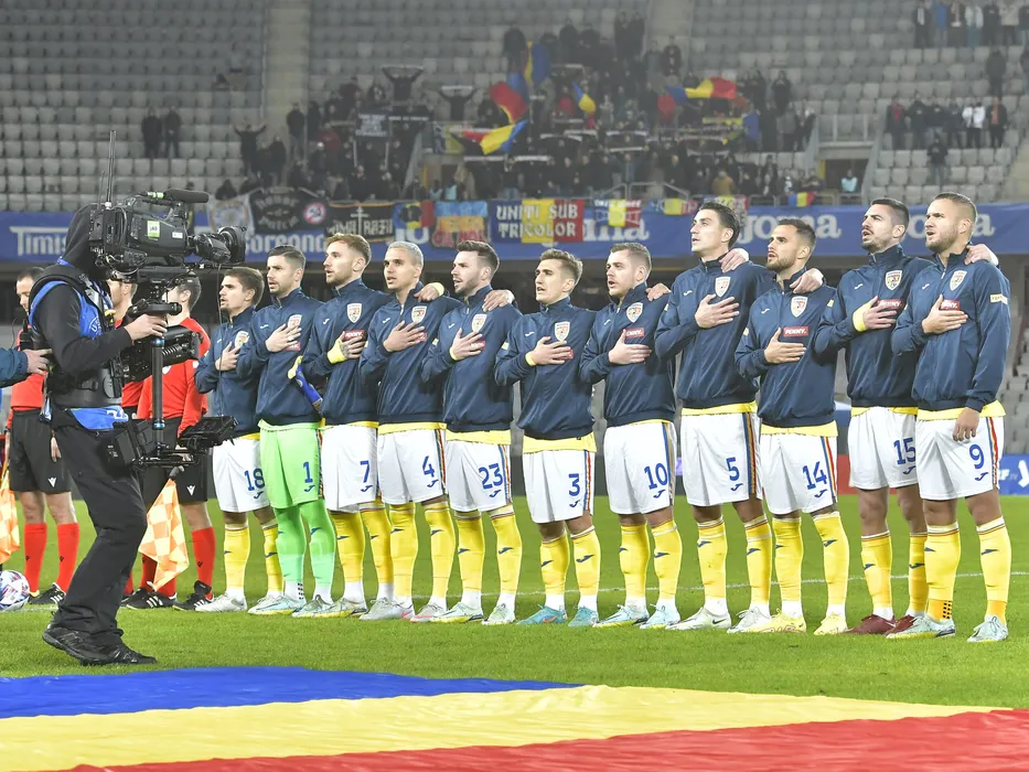 Fotbalistii romani la startul meciului amical de fotbal dintre Romania si Slovenia, desfasurat pe Cluj Arena din Cluj Napoca, joi 17 noiembrie 2022. © FOTO:Razvan Pasarica/SPORT PICTURES