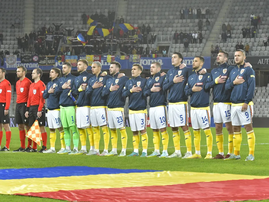 Fotbalistii romani la startul meciului amical de fotbal dintre Romania si Slovenia, desfasurat pe Cluj Arena din Cluj Napoca, joi 17 noiembrie 2022. © FOTO:Razvan Pasarica/SPORT PICTURES