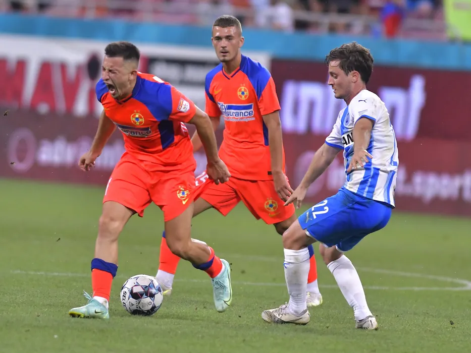 Olimpiu Vasile Morutan si Gustavo Vagenin in meciul de fotbal dintre FCSB si Universitatea Craiova, contand pentru Liga 1 Casa Pariurilor, desfasurat pe Arena Nationala din Bucuresti, duminica 25 iulie 2021. © FOTO:Razvan Pasarica/SPORT PICTURES