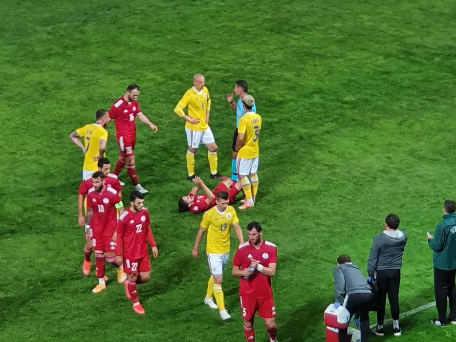 Florin Tănase, eliminat mult prea ușor în amicalul România – Georgia! Căpitanul lui FCSB a primit cartonașul roșu în prima repriză | FOTO