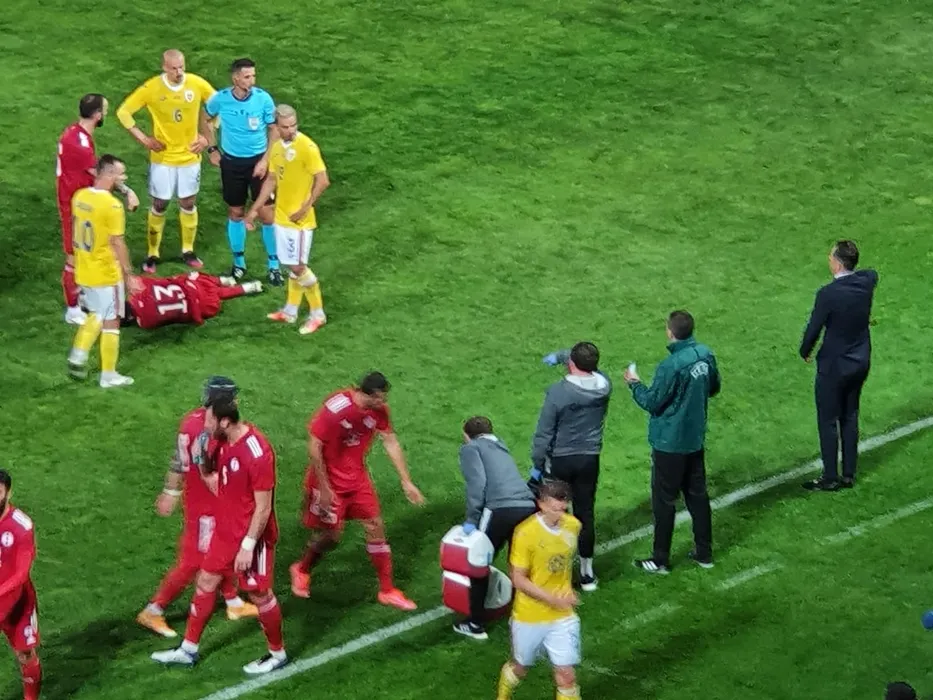 Florin Tănase, eliminat mult prea ușor în amicalul România – Georgia! Căpitanul lui FCSB a primit cartonașul roșu în prima repriză | FOTO