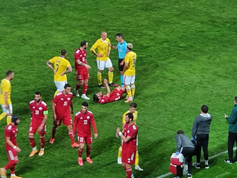 Florin Tănase, eliminat mult prea ușor în amicalul România – Georgia! Căpitanul lui FCSB a primit cartonașul roșu în prima repriză | FOTO