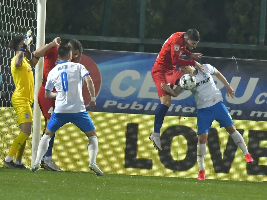 Iulian Lucian Cristea si Alexandru Mateiu in meciul de fotbal dintre FCSB si Universitatea Craiova, contand pentru Liga 1 Casa Pariurilor, desfasurat fara spectatori pe Stadionul Marin Anastasovici din Giurgiu, duminica 4 aprilie 2021. © FOTO:Razvan Pasarica/SPORT PICTURES