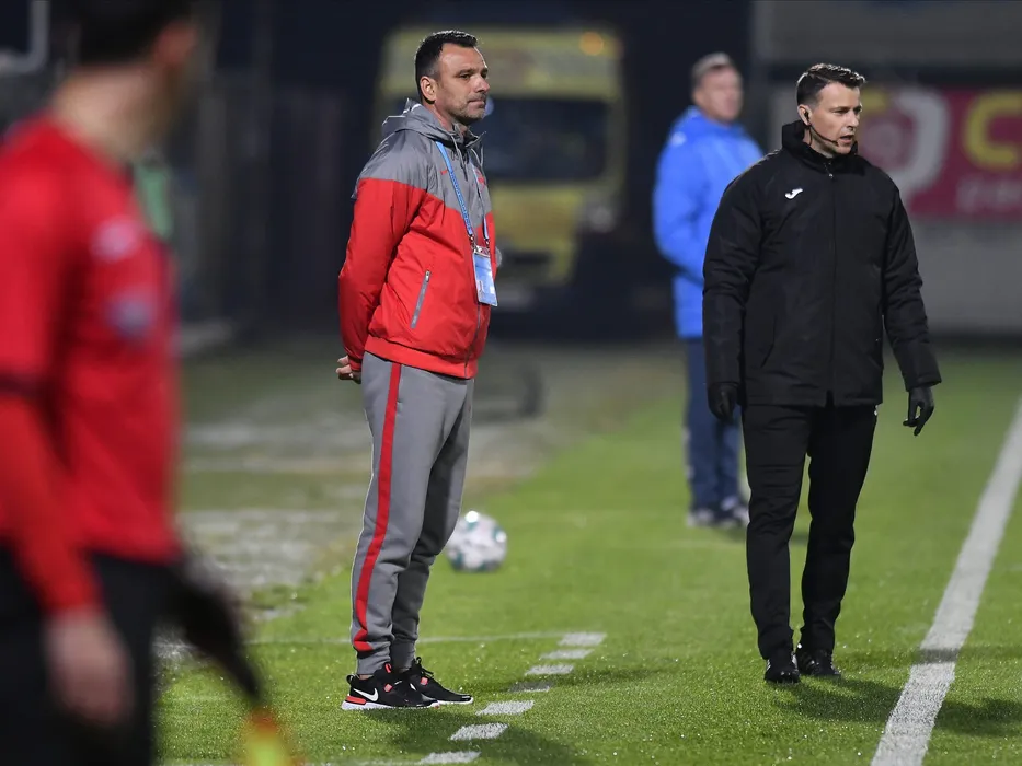 Toni Petrea alaturi de arbitrul de rezerva Catalin Busi in meciul de fotbal dintre Chindia Targoviste si FCSB, contand pentru Liga 1 Casa Pariurilor, desfasurat pe Stadionul Marin Anastasovici din Giurgiu, luni 2 noiembrie 2020. © FOTO:Razvan Pasarica/SPORT PICTURES