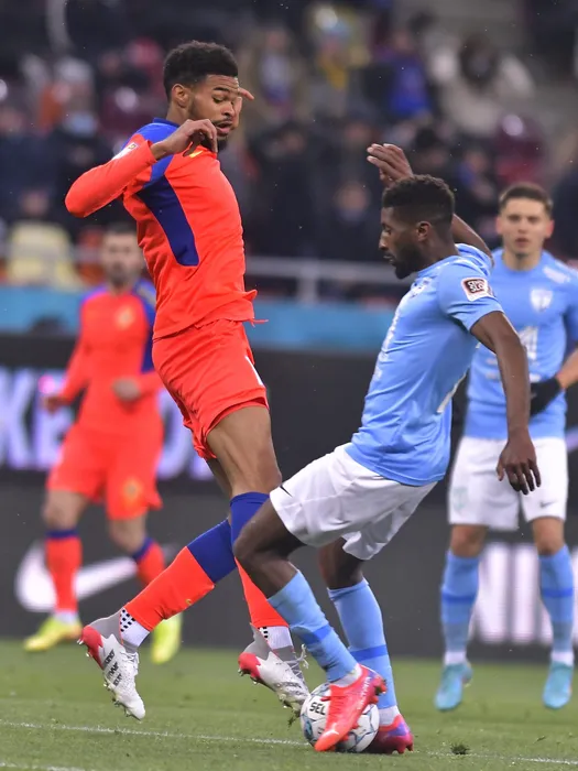 Sylas Laouari Edjouma Malcom si Helder Luis Lopes Vieira Tavares in meciul de fotbal dintre FCSB si FC Voluntari, contand pentru Liga 1 Casa Pariurilor, desfasurat pe Arena Nationala din Bucuresti, duminica 6 martie 2022. © FOTO:Razvan Pasarica/SPORT PICTURES