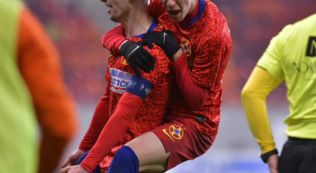 Florin Lucian Tanase se bucura dupa un gol marcat alaturi de Octavian George Popescu in meciul de fotbal dintre FCSB si CFR Cluj, contand pentru Liga 1 Casa Pariurilor, desfasurat fara spectatori pe Arena Nationala din Bucuresti, vineri 19 martie 2021. © FOTO:Razvan Pasarica/SPORT PICTURES