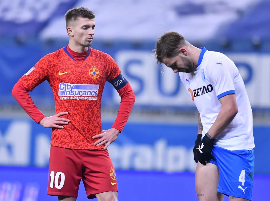 Florin Lucian Tanase si Mihai Alexandru Balasa in meciul de fotbal dintre Universitatea Craiova si FCSB, contand pentru Liga 1 Casa Pariurilor, desfasurat fara spectatori pe Stadionul Ion Oblemenco din Craiova, vineri 18 decembrie 2020. © FOTO:Razvan Pasarica/SPORT PICTURES