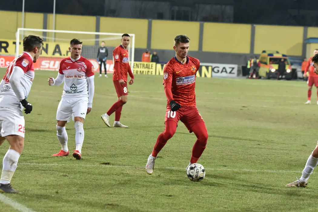 Ionut Petrisor Petrescu si Florin Lucian Tanase in meciul de fotbal dintre FC Hermannstadt si FCSB, contand pentru Liga 1 Casa Pariurilor, desfasurat fara spectatori pe Stadionul Municipal din Medias, duminica 14 februarie 2021. © FOTO:Alexandru Veres/SPORT PICTURES