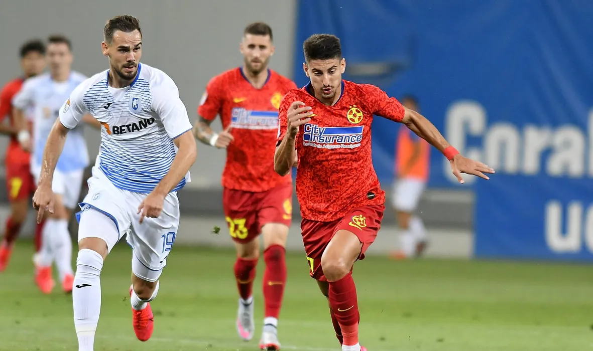 Elvir Koljic si Lucian Iulian Cristea in meciul de fotbal dintre Universitatea Craiova si FCSB, contand pentru play-off-ul Ligii 1 Casa Pariurilor, disputat fara spectatori pe Stadionul Ion Oblemenco din Craiova, duminica 12 iulie 2020. © FOTO:Razvan Pasarica/SPORT PICTURES