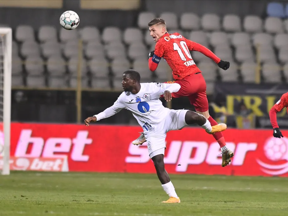 Francisco Santos Da Silva Junior si Florin Lucian Tanase in meciul de fotbal dintre Gaz Metan Medias si FCSB, contand pentru Liga 1 Casa Pariurilor, desfasurat fara spectatori pe Stadionul Municipal din Medias, luni 23 noiembrie 2020. © FOTO:Razvan Pasarica/SPORT PICTURES