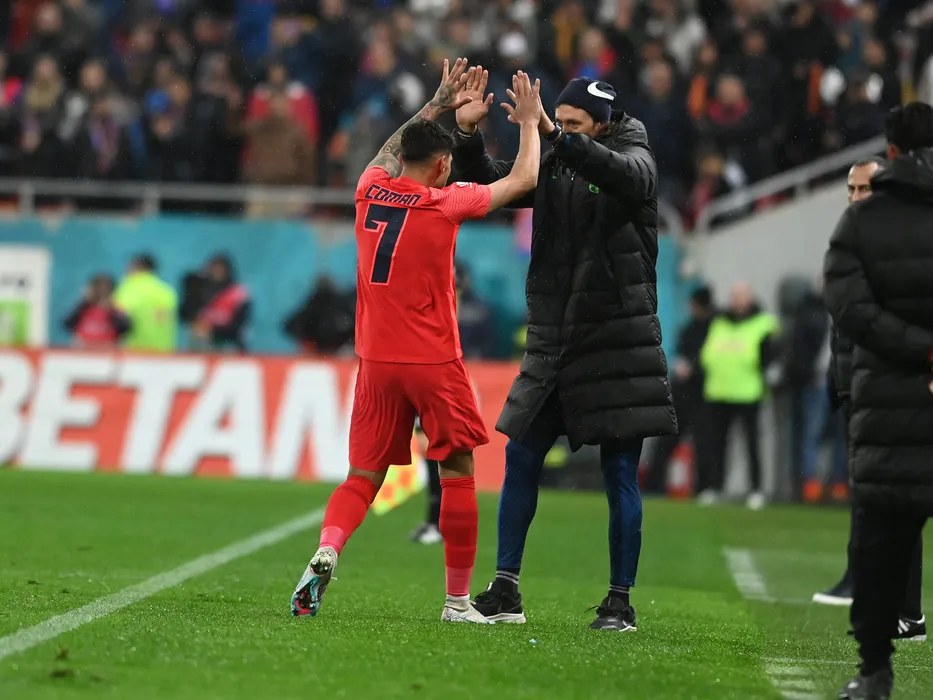 Florinel Teodor Coman se bucura dupa un gol marcat alaturi de Ovidiu Petre in meciul de fotbal dintre FCSB si Farul Constanta, contand pentru Play-off-ul Superligii Superbet, desfasurat pe Arena Nationala din Bucuresti, luni 17 aprilie 2023. © FOTO:Razvan Pasarica/SPORT PICTURES