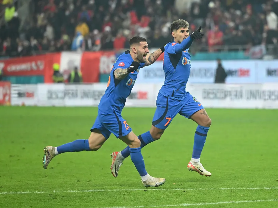 Florinel Teodor Coman se bucura dupa un gol marcat alaturi de Ovidiu Marian Popescu in meciul de fotbal dintre Dinamo Bucuresti si FCSB, din cadrul Superligii Superbet, desfasurat pe Arena Nationala din Bucuresti, duminica 26 noiembrie 2023. © FOTO:Razvan Pasarica/SPORT PICTURES