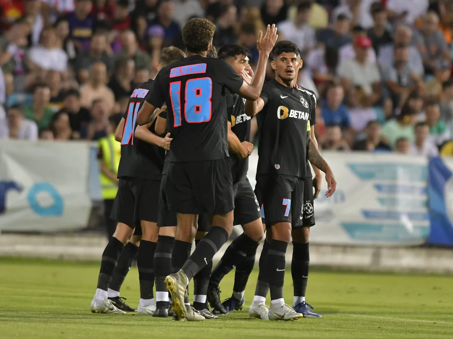 Bucurie a fotbalistilor stelisti dupa un gol marcat de catre Florinel Teodor Coman in meciul amical de fotbal dintre Otelul Galati si FCSB, desfasurat pe Stadionul Otelul din Galati, sambata 9 iulie 2022. © FOTO:Razvan Pasarica/SPORT PICTURES