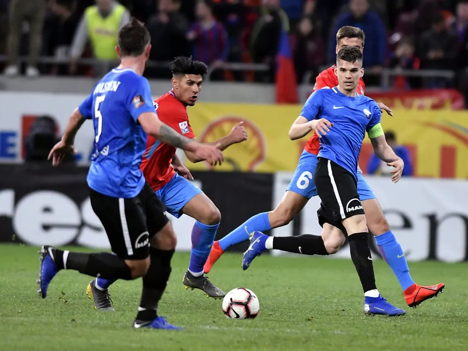 Florinel Coman si Ianis Hagi in meciul de fotbal dintre FCSB si FC Viitorul, contand pentru playoff-ul Ligii 1 Betano, desfasurat pe Arena Nationala din Bucuresti, luni 11 martie 2019. © FOTO Razvan Pasarica/SPORT PICTURES