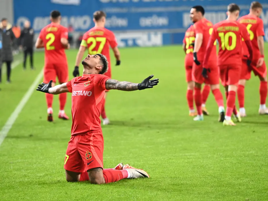 Florinel Teodor Coman multumeste Divinitatii dupa un gol marcat în meciul de fotbal dintre Universitatea Craiova si FCSB, contând pentru Superliga Superbet, desfășurat pe Stadionul Ion Oblemenco din Craiova, duminica 28 ianuarie 2024. © FOTO: Răzvan PĂSĂRICĂ/SPORT PICTURES