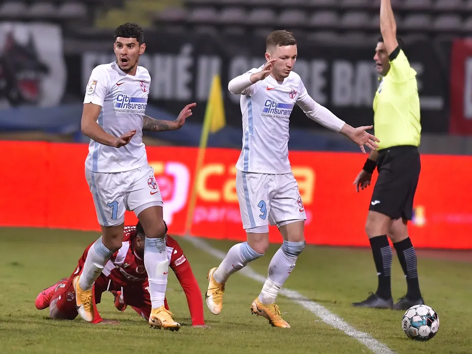 Florinel Teodor Coman si Ionut Constantin Pantiru in meciul de fotbal dintre Dinamo Bucuresti si FCSB, contand pentru Cupa Romaniei, desfasurat fara spectatori pe Stadionul Dinamo din Bucuresti, miercuri 10 februarie 2021. © FOTO:Razvan Pasarica/SPORT PICTURES