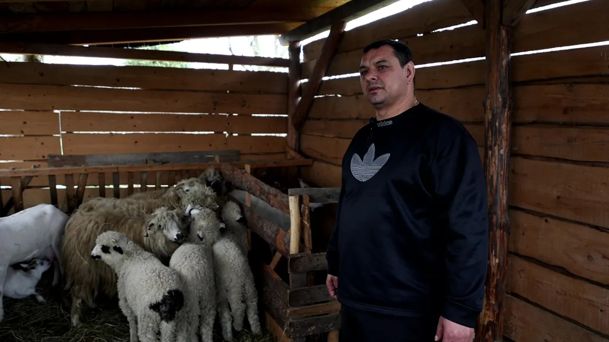 Ionel Ganea, în staul, alătri de oile pe care le crește la Gura Văii
