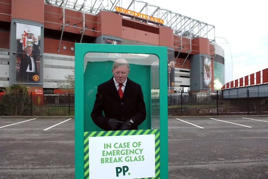 Forma slabă a lui United a ajuns subiect de glume! FOTO – Statuia lui Sir Alex a fost amplasată în fața stadionului! Mesajul pentru fanii echipei