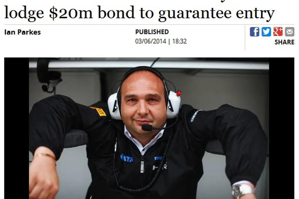 Forza Rossa anunță că nu mai intră în Formula 1 în 2015: „Nu am primit acordul final de la FIA”. Victor Ponta semnase angajamente în numele României pentru „prima echipă românească din F1”, fără licență ACR