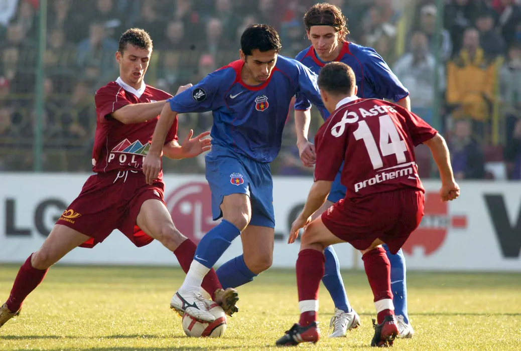 Formatia CFR Cluj a intilnit, duminica, pe teren propriu, echipa Steaua Bucuresti intr-un meci din cadrul etapei a XII-a a Diviziei A. In imagine, Cosmin Tilinca, Nicola Dica si Florin Lovin