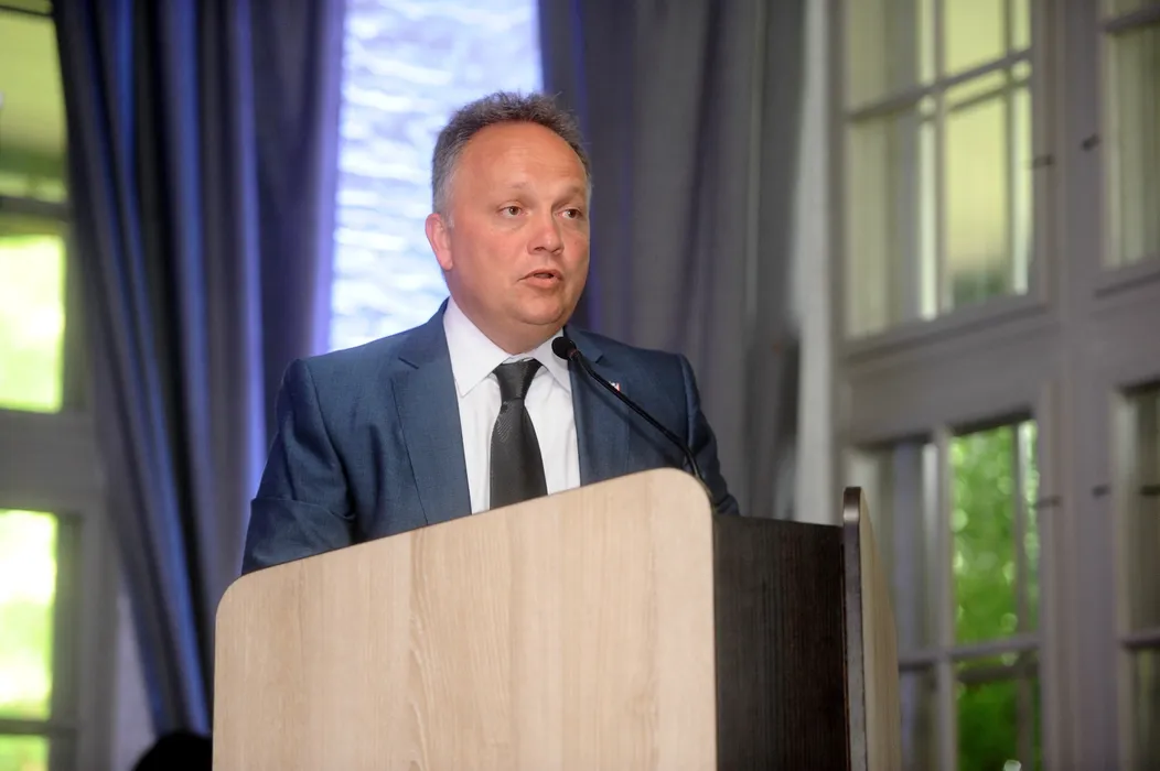 Claudiu Florica, director Regal Sport Club Bucuresti, sustine un discurs in timpul ceremoniei de semnare a parteneriatului dintre Regal Sport Club Bucuresti si Clubul Atletico de Madrid, pentru înfiintarea si operarea la Bucuresti a academiei de fotbal Atletico Madrid, prima deschisa în Europa, in Bucuresti, miercuri, 25 iunie 2014. MARIUS DUMBRAVEANU / MEDIAFAX FOTO