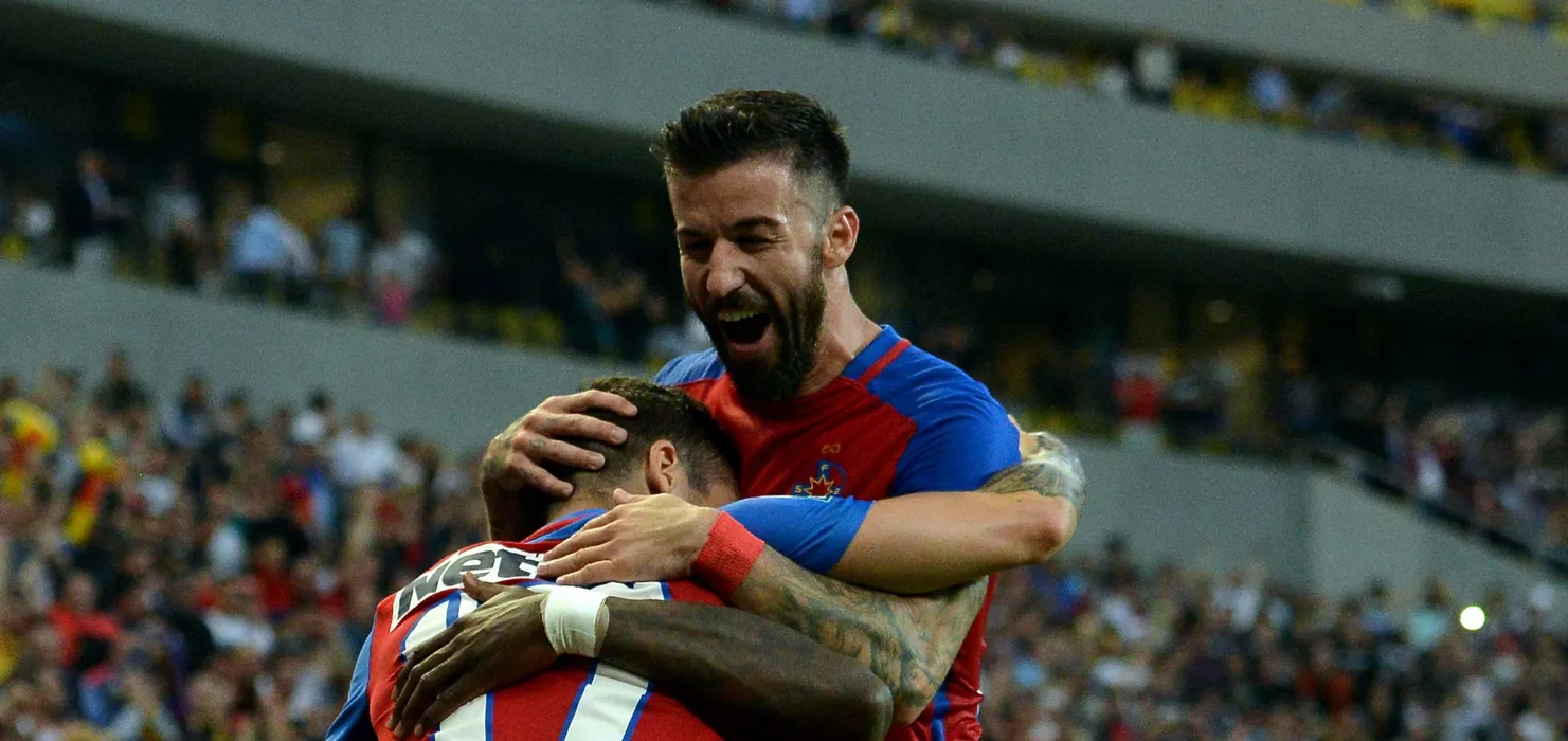 Gabriel Enache se bucura in meciul de fotbal dintre FCSB si CS Universitatea Craiova, disputat pe Arena Nationala in cadrul playoff-ului Ligii 1 Orange, sambata 13 mai 2017.Razvan Pasarica/SPORT PICTURES