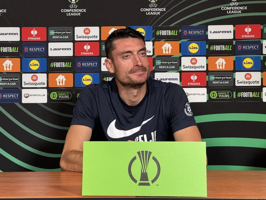 CELJE, SLOVENIA - OCTOBER 23: Celje's head coach Albert Riera and David Zec (not seen) hold a press conference ahead of the UEFA Conference League week 2 match between Celje and RAMS Basaksehir at Celje Stadium in Celje, Slovenia on October 23, 2024. Hilmi Sever / Anadolu,Image: 925423653, License: Rights-managed, Restrictions: , Model Release: no, Credit line: Hilmi Sever / AFP / Profimedia