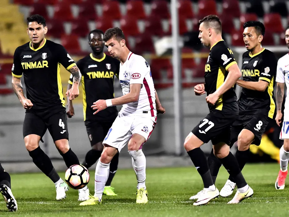 Fabricio,Florin Tanase,Alexandru Stan si Seto Takayuki in meciul de fotbal dintre Astra Giurgiu si FCSB din cadrul play off-ului Ligii 1 Orange, disputat pe stadionul Marin Anastasovici din Giurgiu, luni 8 mai 2017.Razvan Pasarica/SPORT PICTURES