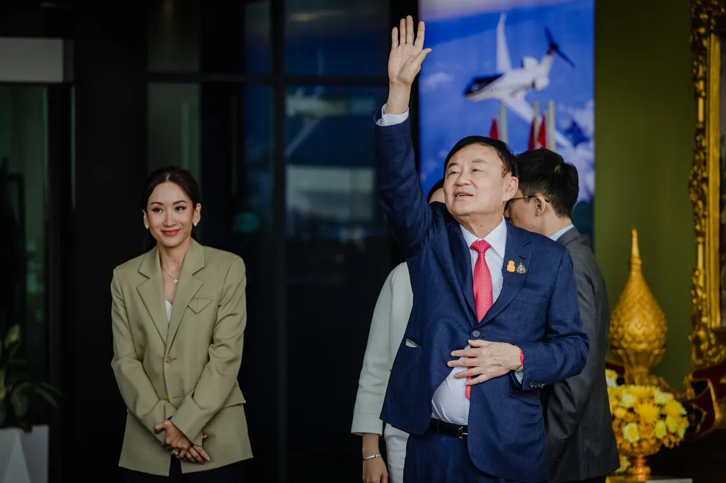 Crowds of supporters take part at Don Mueang Airport during Thaksin Shinawatra's return to Thailand after he has not lived in Thailand for 17 years after being exiled.
