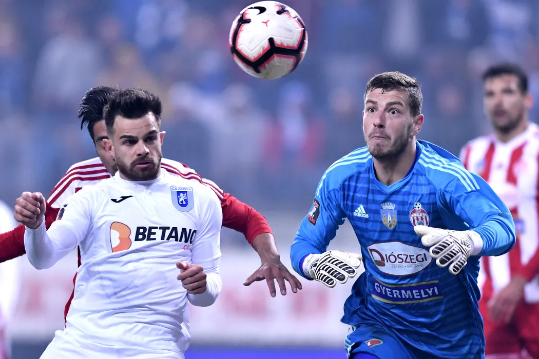 Cristian Barbut si Csongor Bela Fejer in meciul de fotbal dintre Universitatea Craiova si Sepsi OSK Sfantu Gheorghe, din cadrul Ligii 1 Betano, disputat pe Stadionul Ion Oblemenco din Craiova, vineri 9 noiembrie 2018. © FOTO Razvan Pasarica/SPORT PICTURES