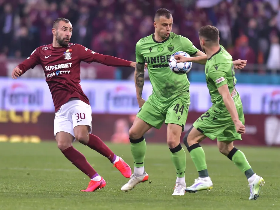 Alexandru Adrian Dandea si Mirko Ivanovski in meciul de fotbal dintre Rapid Bucuresti si Dinamo Bucuresti, contand pentru Liga 1 Casa Pariurilor, desfasurat pe Arena Nationala din Bucuresti, sambata 26 februarie 2022. © FOTO:Razvan Pasarica/SPORT PICTURES