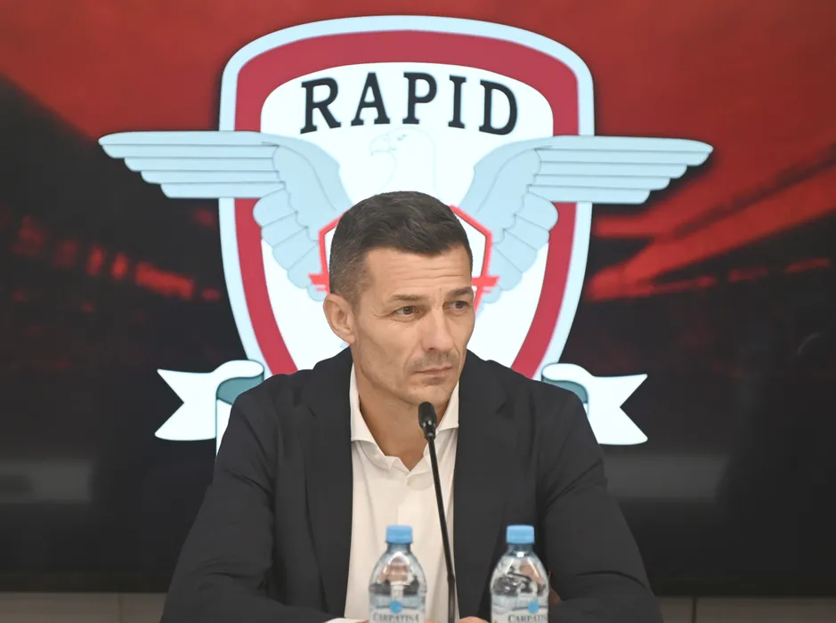Costel Galca participa la o conferinta de presa desfasurata la Clubul Rapid din Bucuresti, luni 9 iunie 2025. © FOTO: Simion Mechno/SPORT PICTURES