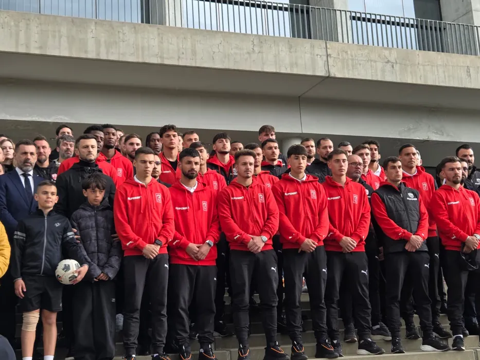 Fotbaliștii lui Dinamo au venit să îi aducă un omagiu lui Mircea Lucescu. Au cărat cu greu coroana imensă din partea clubului