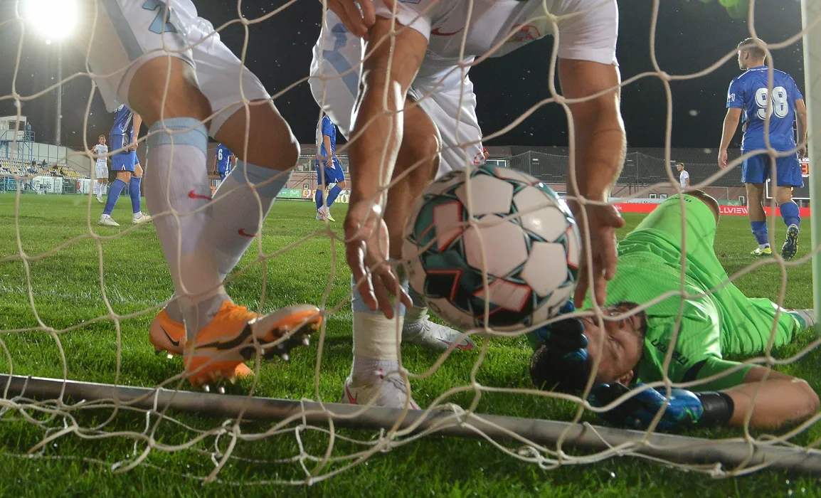 Ovidiu Marian Popescu si Alexandru Daniel Buziuc scot mingea din plasa portii aparate de catre Victor Teodor Ramniceanu dupa un gol reusit in meciul de fotbal dintre FC Voluntari si FCSB, contand pentru Liga 1 Casa Pariurilor, desfasurat fara spectatori pe Stadionul Anghel Iordanescu din Voluntari, sambata 12 septembrie 2020. © FOTO:Razvan Pasarica/SPORT PICTURES