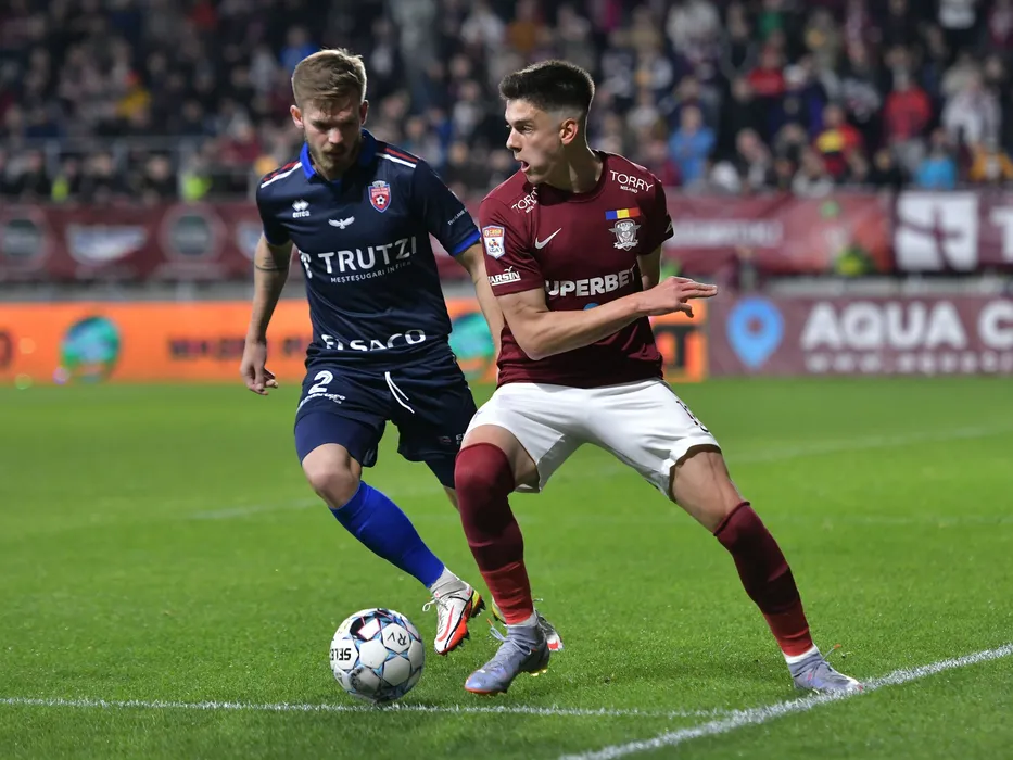 Rares Andrei Ilie si Denis Gratian Harut in meciul de fotbal dintre Rapid Bucuresti si FC Botosani, contand pentru Play-out-ul Ligii 1 Casa Pariurilor, desfasurat pe Stadionul Rapid Giulesti din Bucuresti, sambata 2 aprilie 2022. © FOTO:Razvan Pasarica/SPORT PICTURES
