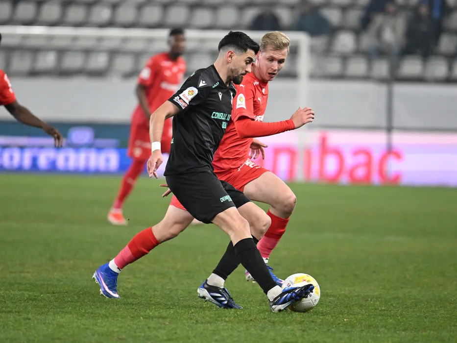 Marius Tudorica si Cristian Petrisor Mihai in meciul de fotbal dintre Dinamo Bucuresti si Metalul Buzau, contand pentru Cupa Romaniei Betano, desfasurat pe Stadionul Arcul de Triumf din Bucuresti, joi 5 martie 2026. © FOTO:Razvan Pasarica/SPORT PICTURES