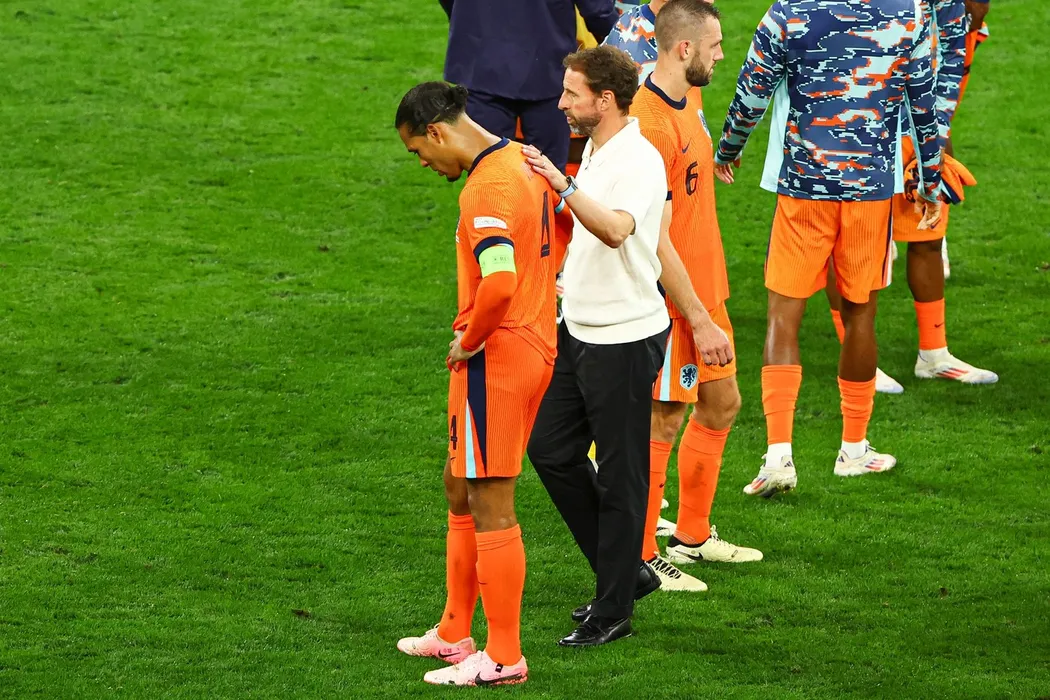 England manager Gareth Southgate consoles Virgil van Dijk of The Netherlands at full-time