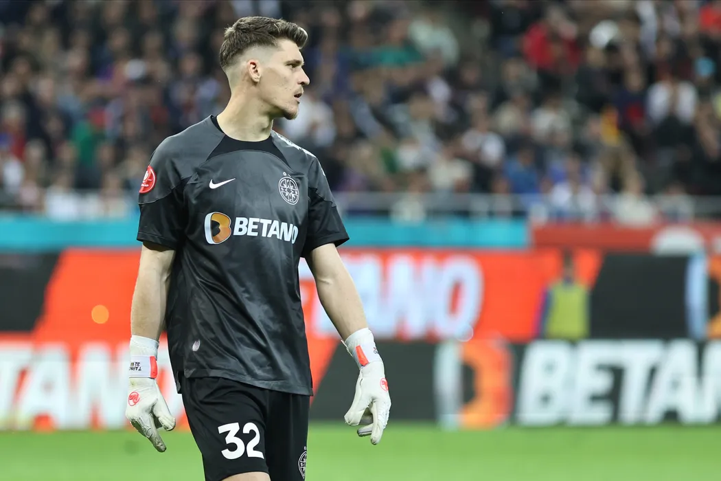 Ștefan Târnovanu reactioneaza in meciul de fotbal dintre FCSB si Universitatea Craiova, din cadrul Play-off-ului Superligii Superbet, desfasurat pe Arena Nationala din Bucuresti, duminica 7 aprilie 2024. © FOTO:Gheorghe Fluster/SPORT PICTURES