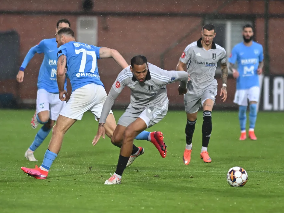 Adam Nemec, Leo Sebastien Lacroix si Andrea Padula in meciul de fotbal dintre FC Voluntari si FC U Craiova, din cadrul Play out-ului Superligii Superbet, desfasurat pe Stadionul Anghel Iordanescu din Voluntari, marti 23 aprilie 2024. © FOTO:Razvan Pasarica/SPORT PICTURES