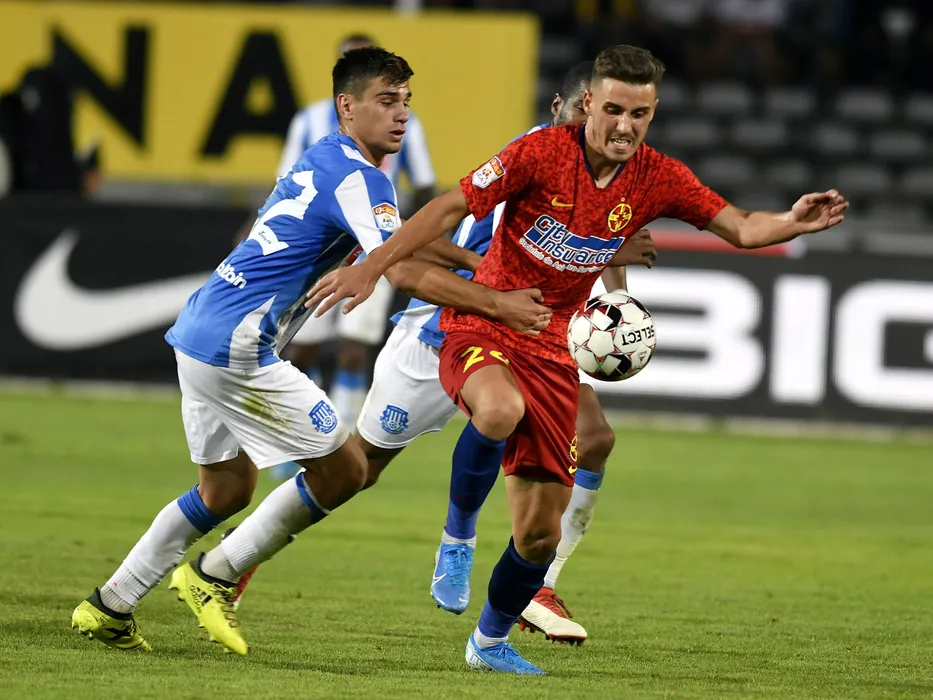 Florian Loshaj si Razvan Oaida in meciul de fotbal dintre FCSB si CS Politehnica Iasi, din cadrul Ligii 1 Casa Pariurilor, desfasurat pe Stadionul Nicolae Dobrin din Pitesti, duminica 4 august 2019. © FOTO:Razvan Pasarica/SPORT PICTURES