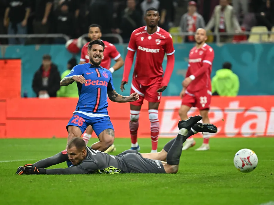 Alexandru Mihail Baluță marchează un gol în poarta lui Adnan Golubovic in meciul de fotbal dintre Dinamo Bucuresti si FCSB, contand pentru Cupa Romaniei, desfasurat pe Arena Nationala din Bucuresti, miercuri 30 octombrie 2024. © FOTO:Razvan Pasarica/SPORT PICTURES