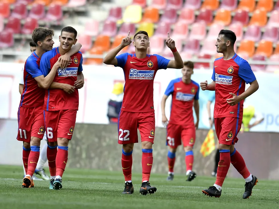 Bucurie stelista cu Stefan Pacionel, Marian Botezatu si Daniel Toma la meciul de fotbal dintre FCSB si Dinamo Bucuresti, in cadrul finalei Cupei Romaniei U19, desfasurata pe Arena Nationala din Bucuresti, duminica 27 mai 2018. © FOTO Razvan Pasarica/SPORT PICTURES